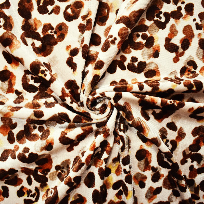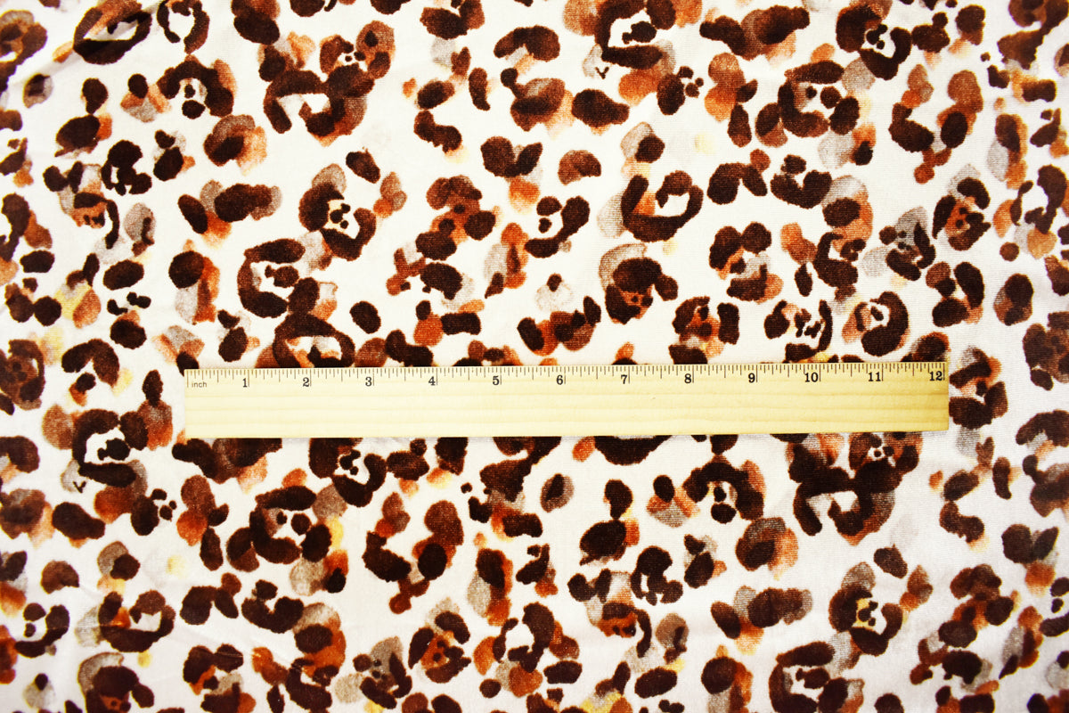 Beige-Brown-Multi Poly Abstract Leopard Print Velvet Knit Fabric