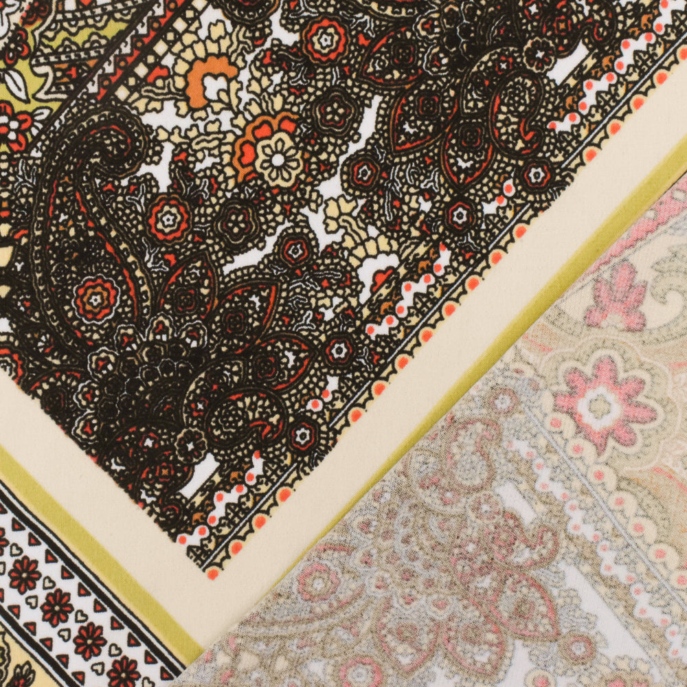 Beige-Orange-Multi Bandana Printed Stretch Poly ITY Knit Fabric