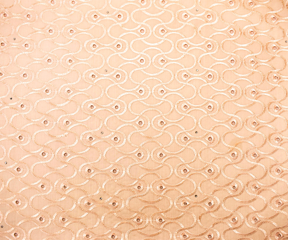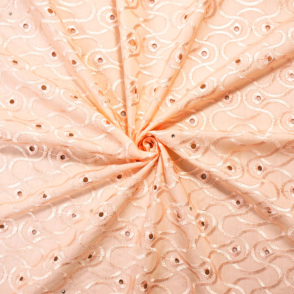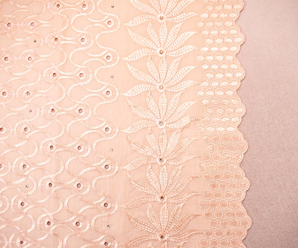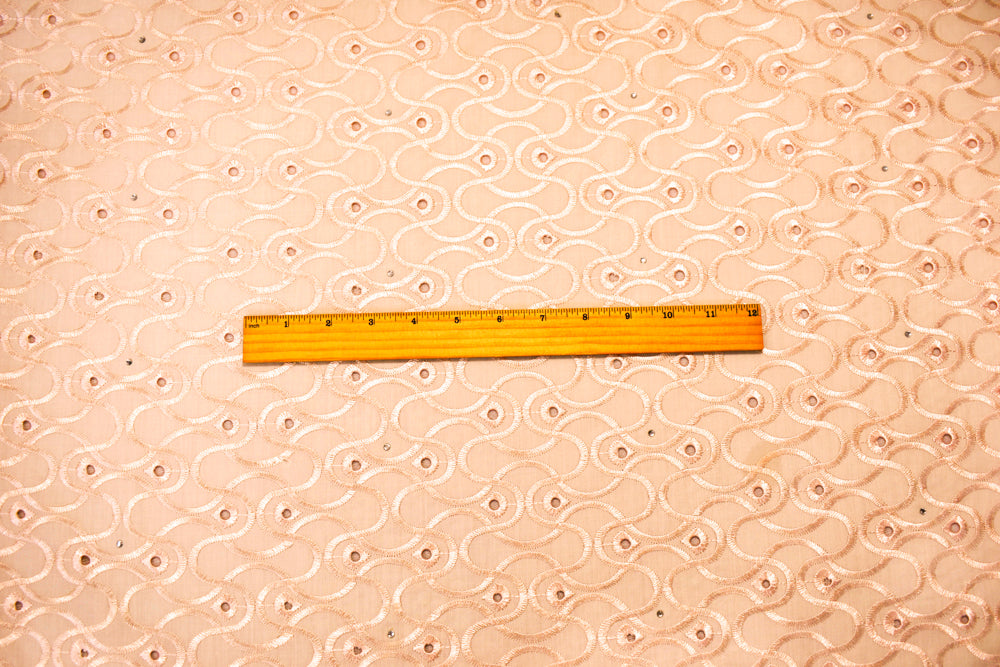 Beige Poly-Cotton Embroidered Floral Scallop Rhinestone Woven Fabric