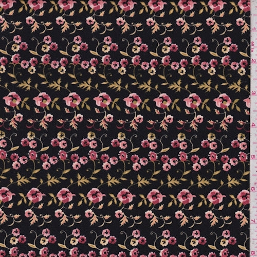 Black/Brick Mini Floral Vine Sanded Crepe Fabric