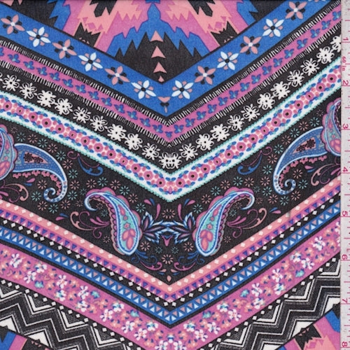 Black/Fuchsia/Violet Deco Chevron Georgette Fabric