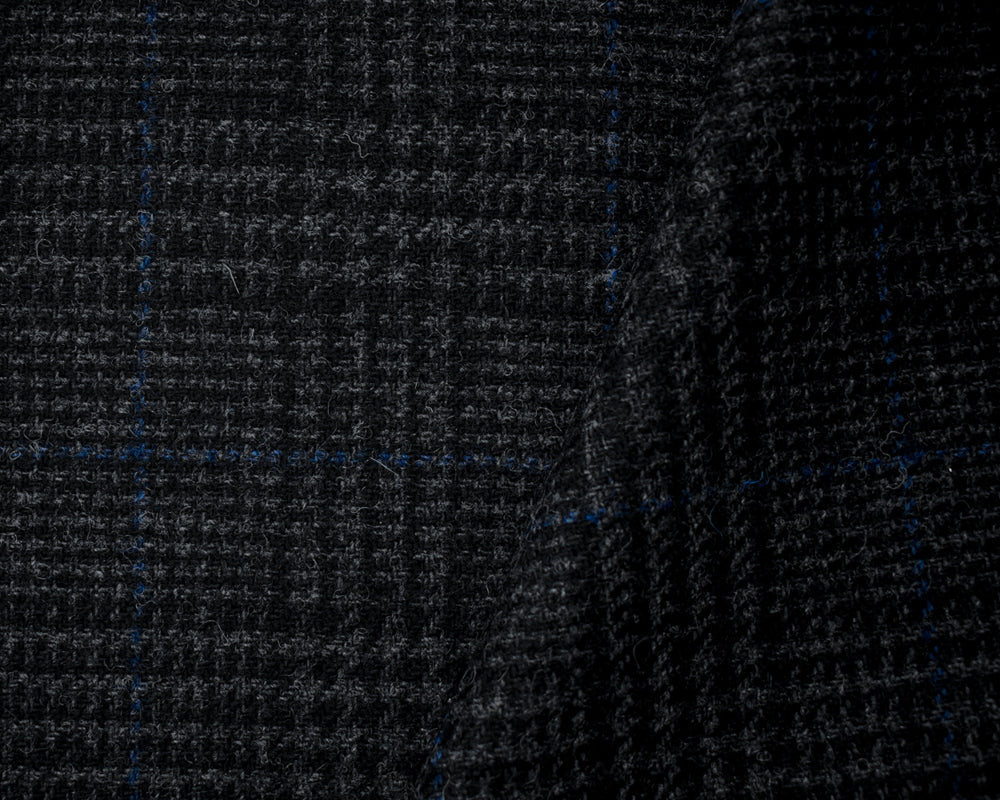 Black-Gray-Blue Wool Rayon Plaid Twill Woven Jacketing Fabric