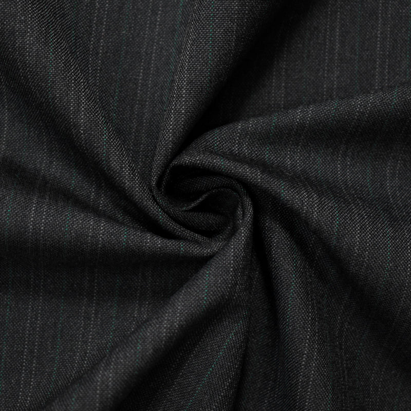 Black-Green Tropical Wool Poly Stripe Woven Shirting Fabric