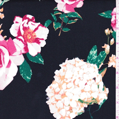 Black Hydrangea/Floral Double Brushed Jersey Knit Fabric