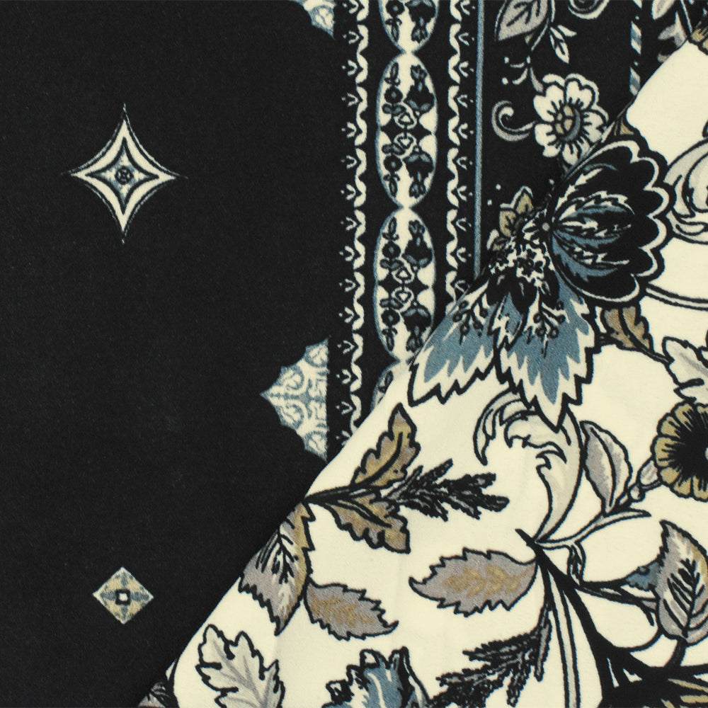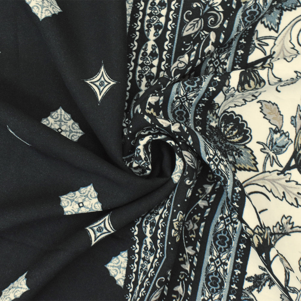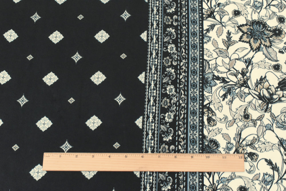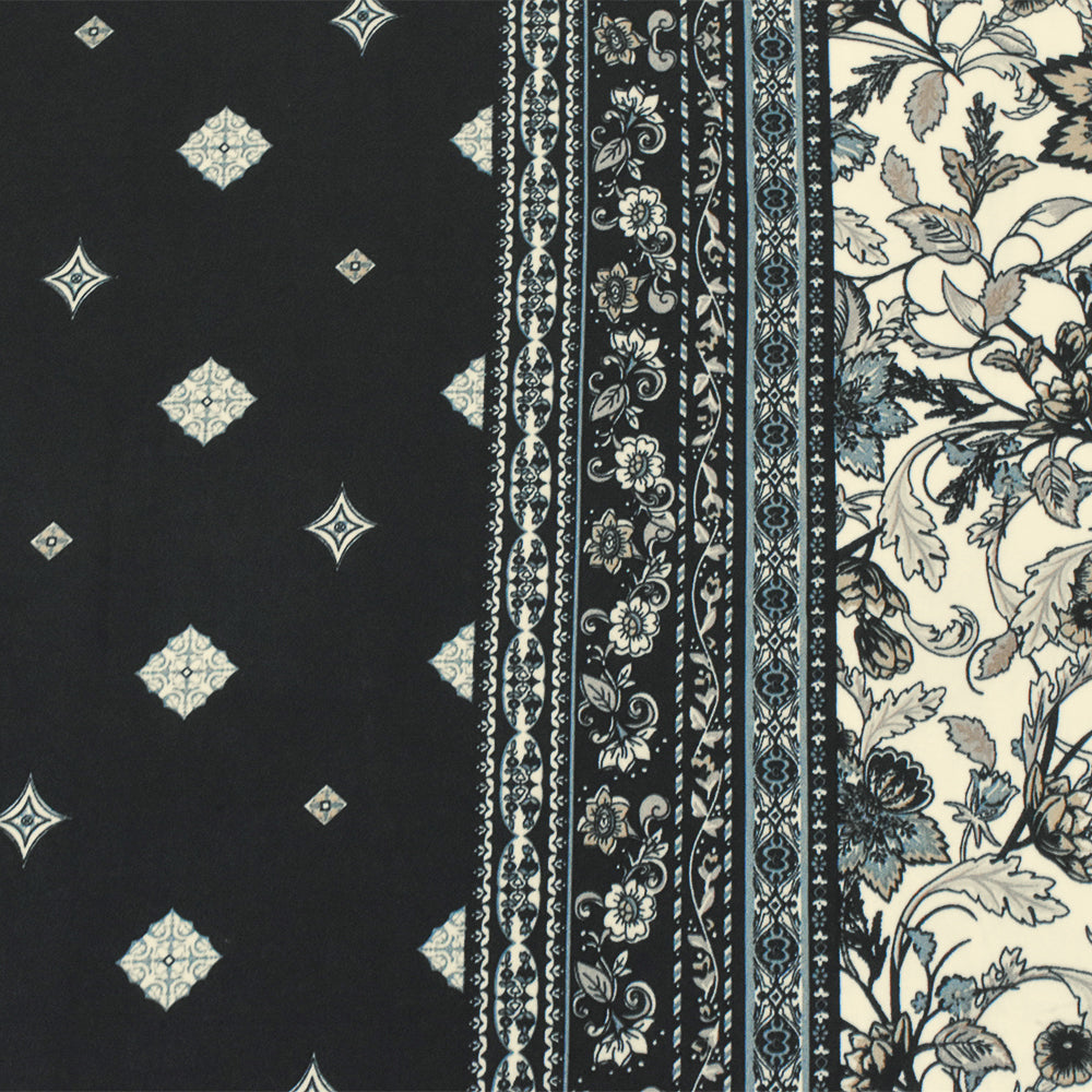 Black-Ivory-Multi Floral Border Printed Poly Georgette Woven Fabric