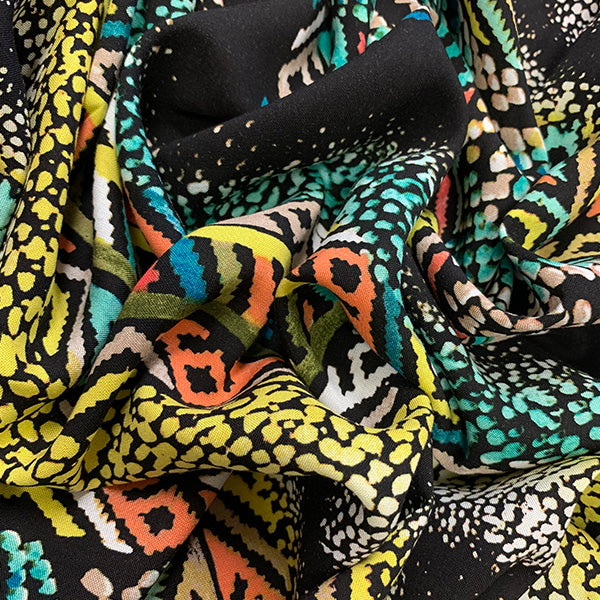 Black Multi Splatter Stripe Print Rayon Challis Fabric