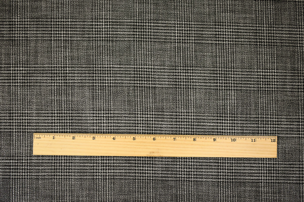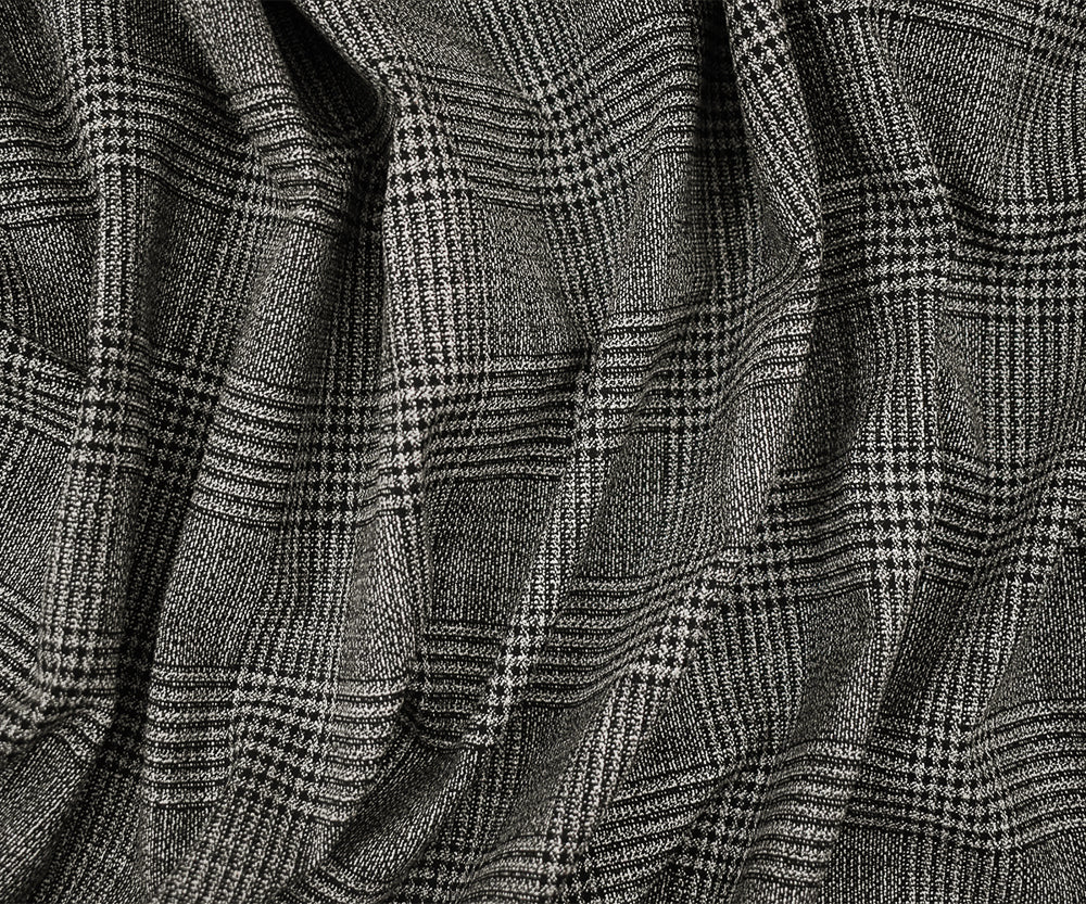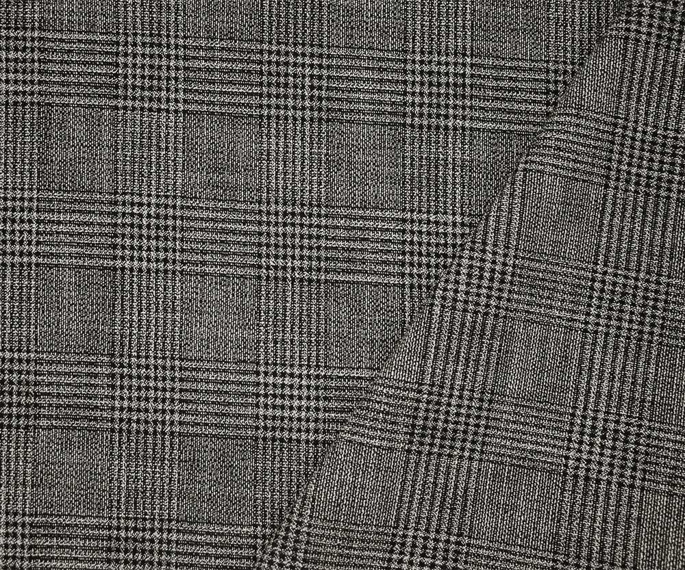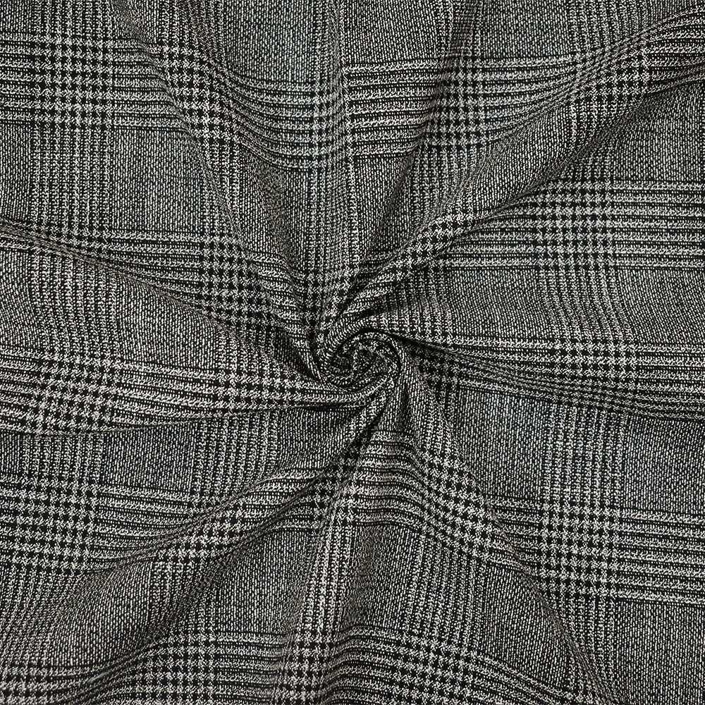Black-Off-White Cotton-Polyester Glen Plaid Woven Suiting Fabric