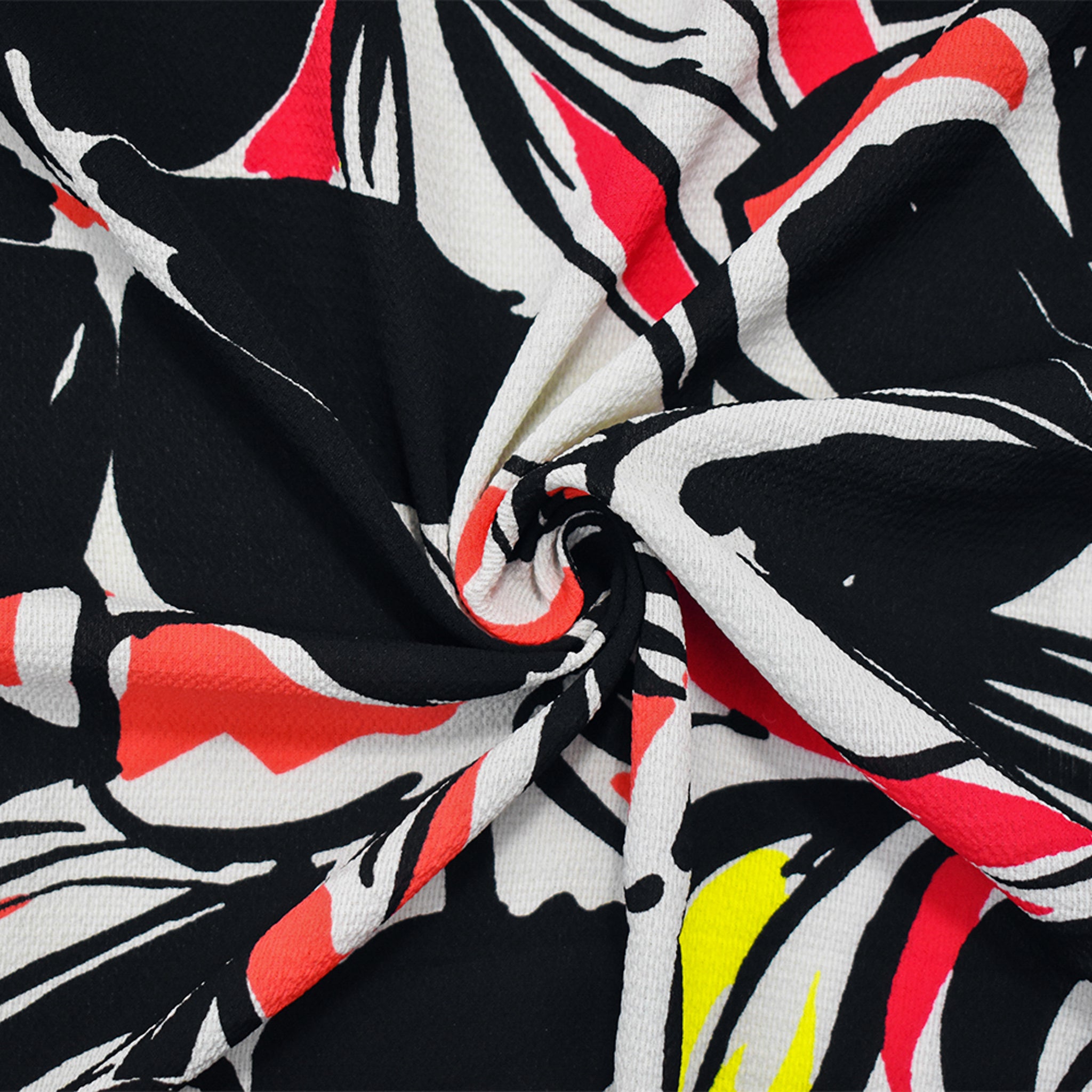 Black-Red-Multi Poly Floral Printed Crepe Dobby Georgette Woven Fabric