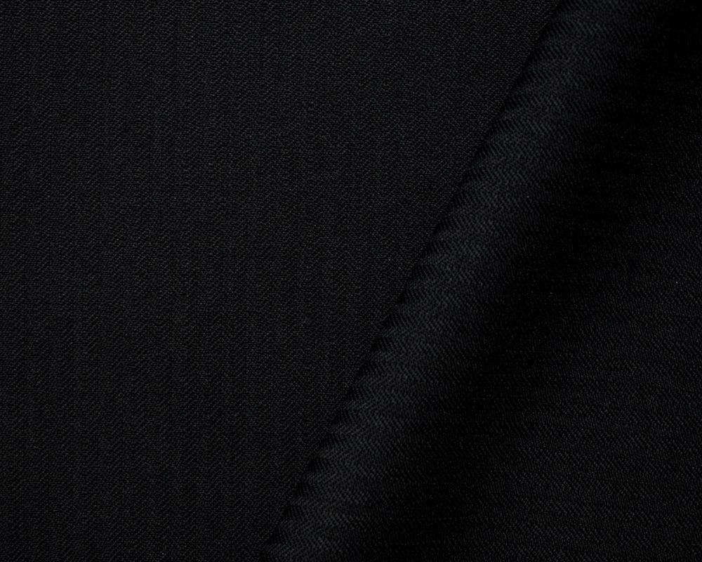 Black Wool Poly Herringbone Twill Woven Shirting Fabric