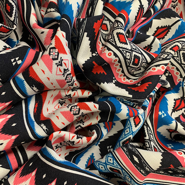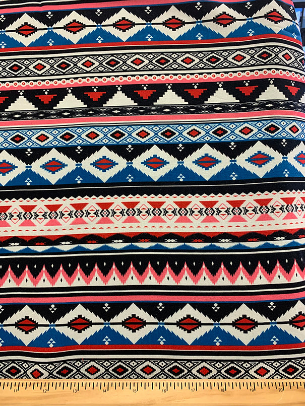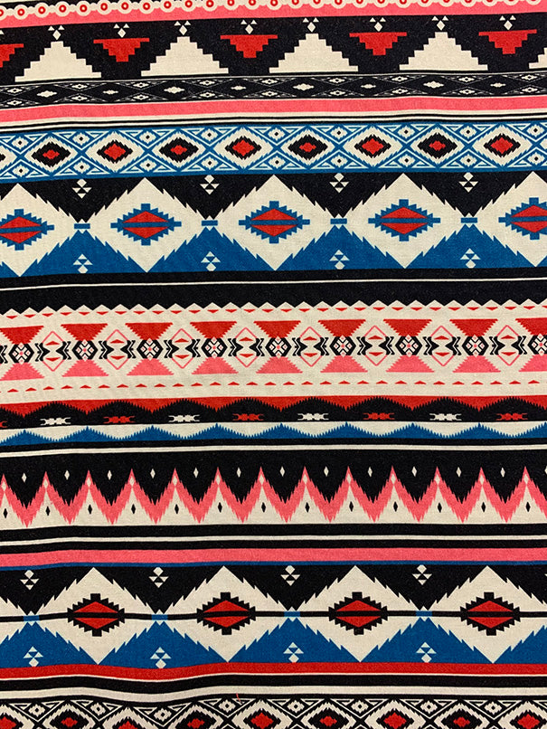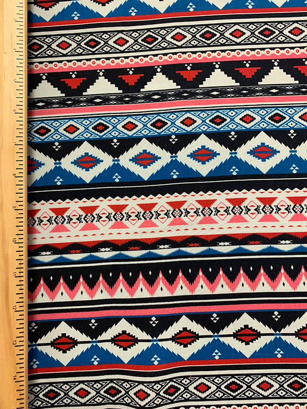 Blue and Pink Multi Aztec Stripe Print Rayon Chalils Fabric