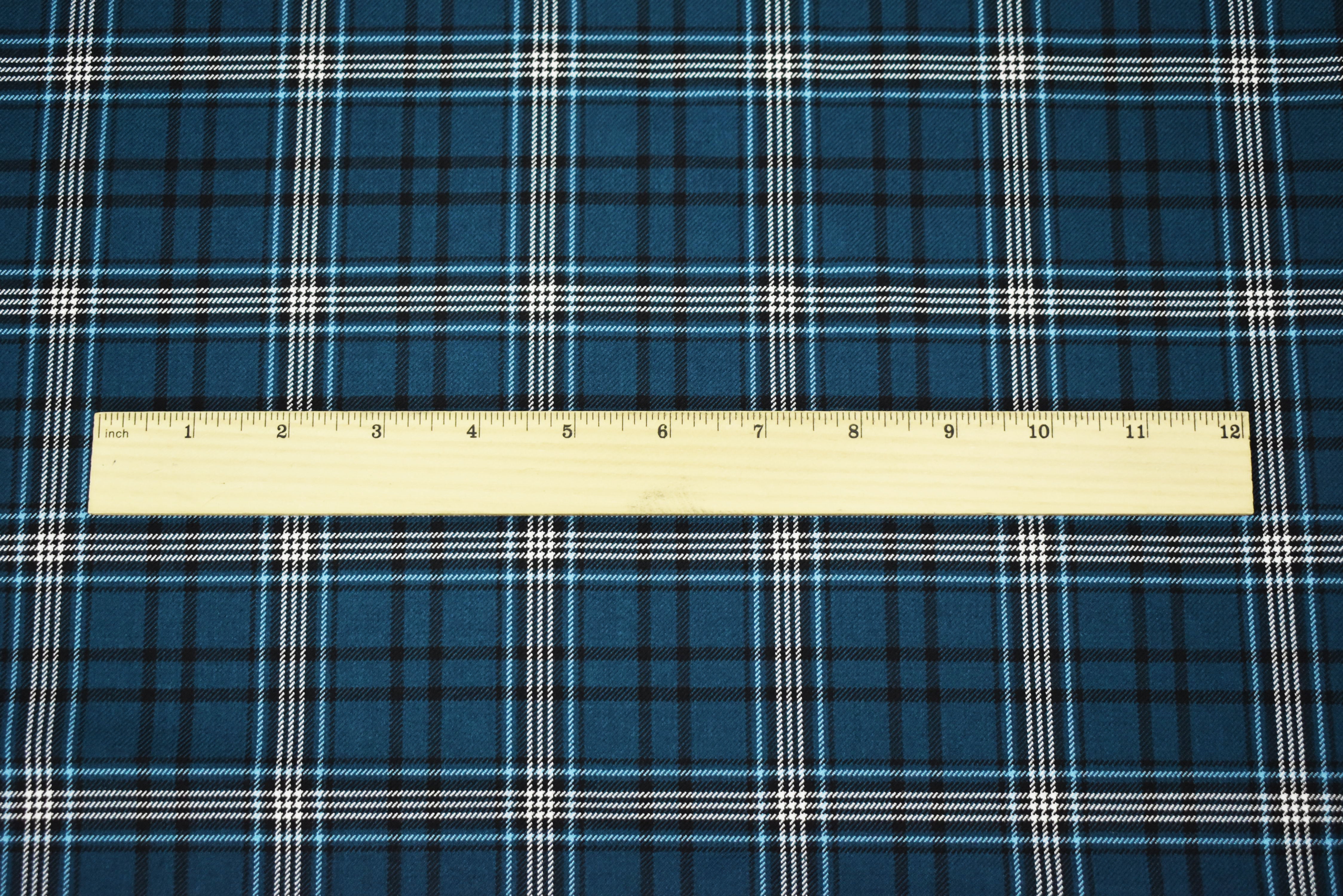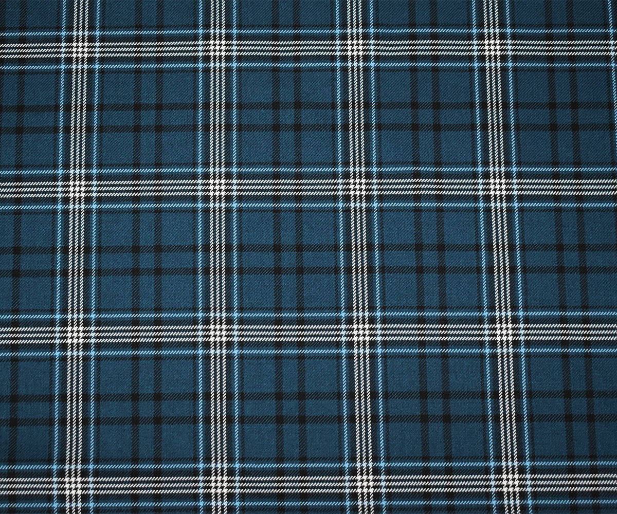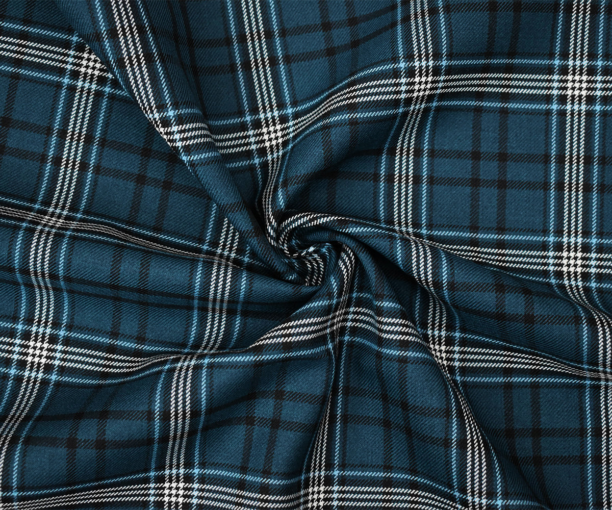 Blue-Black-White Polyester Wool Blend Plaid Twill Suiting Fabric
