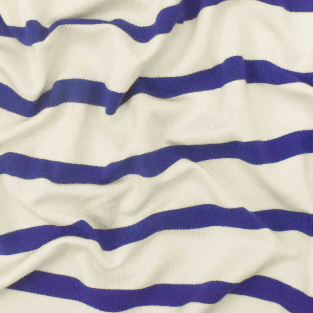Blue-Ivory Stripe Stretch Spandex Rayon Modal Jersey Knit Fabric