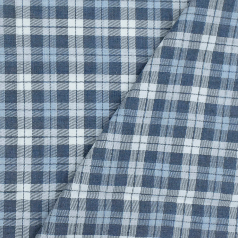 Blue-Navy-White Plaid Cotton Twill Woven Fabric