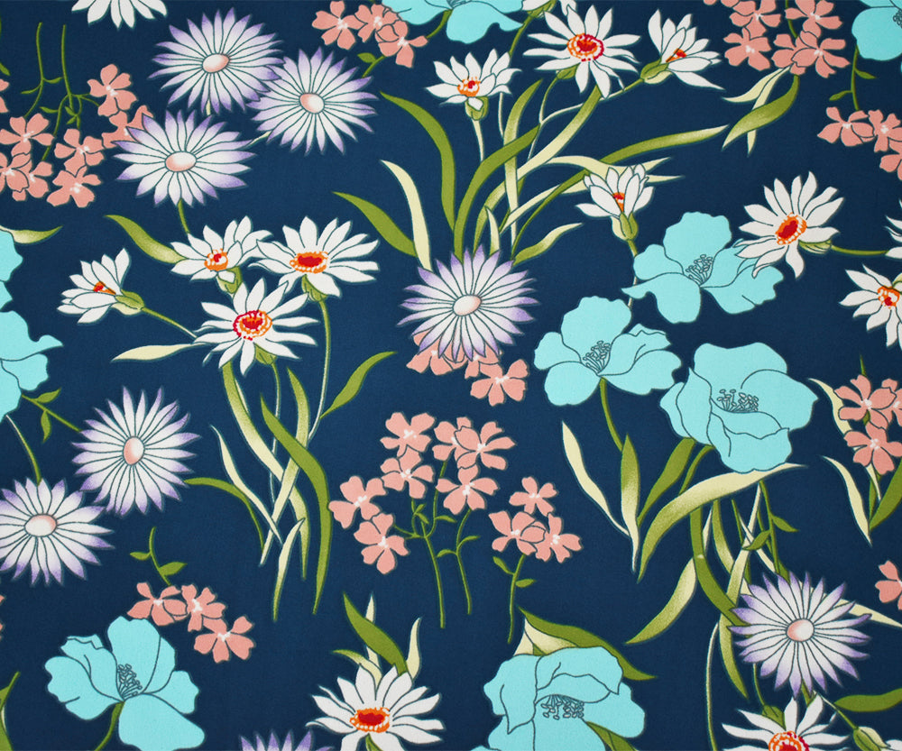 Blue-Pink-Multi Floral Printed Crepe Momie Georgette Woven Fabric