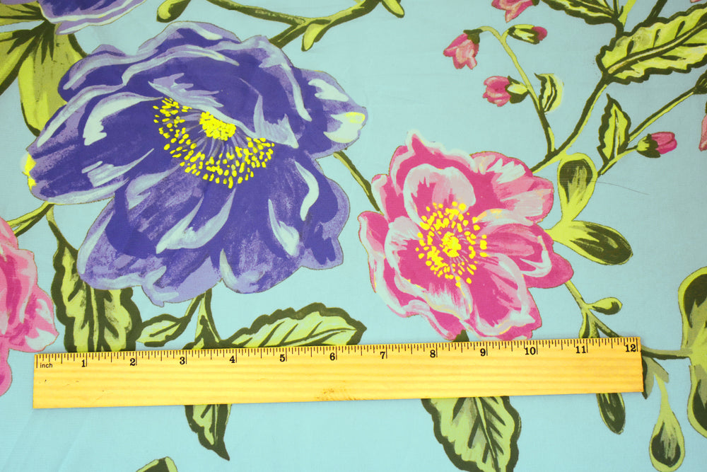 Blue-Pink-Multi Floral Printed Poly Chiffon Woven Fabric