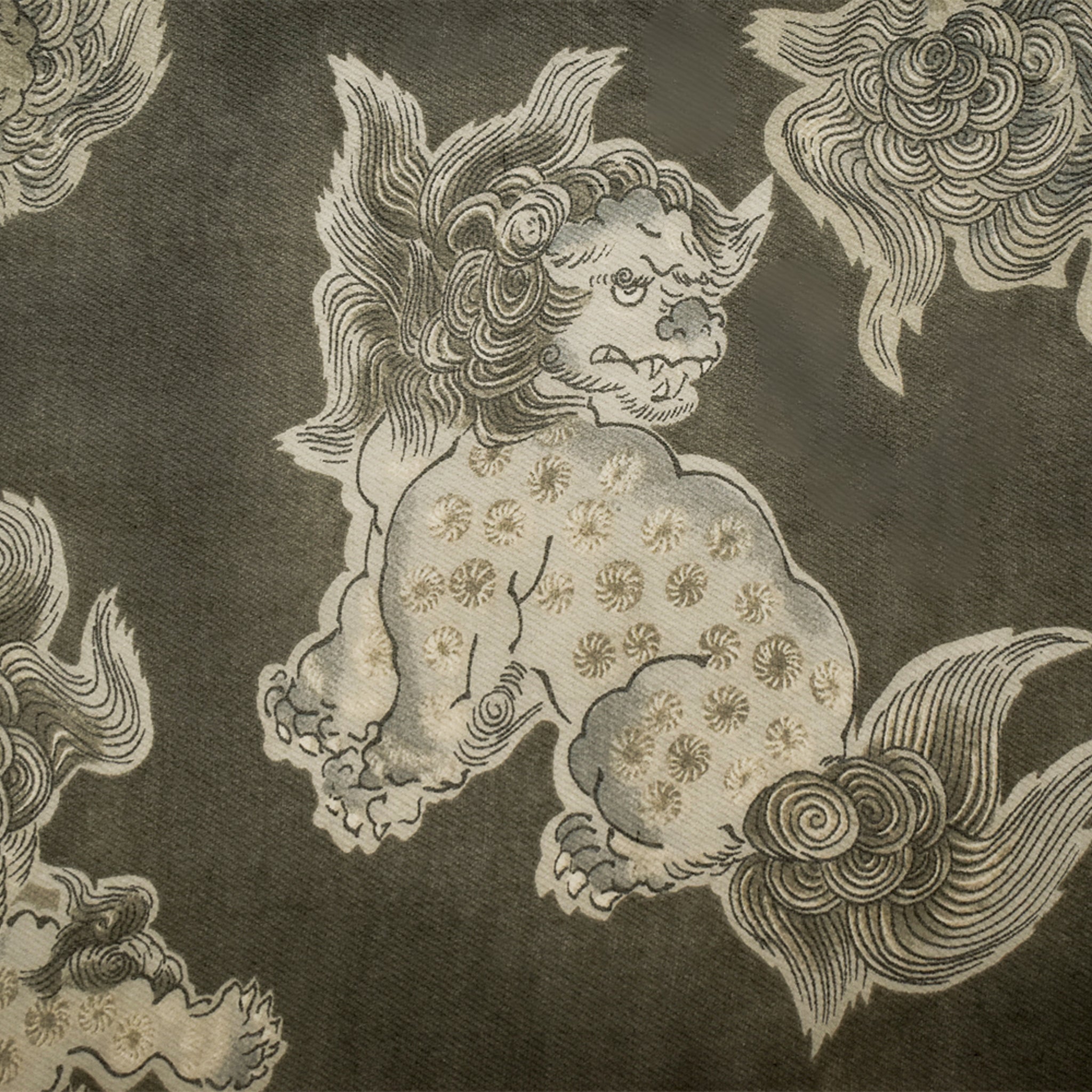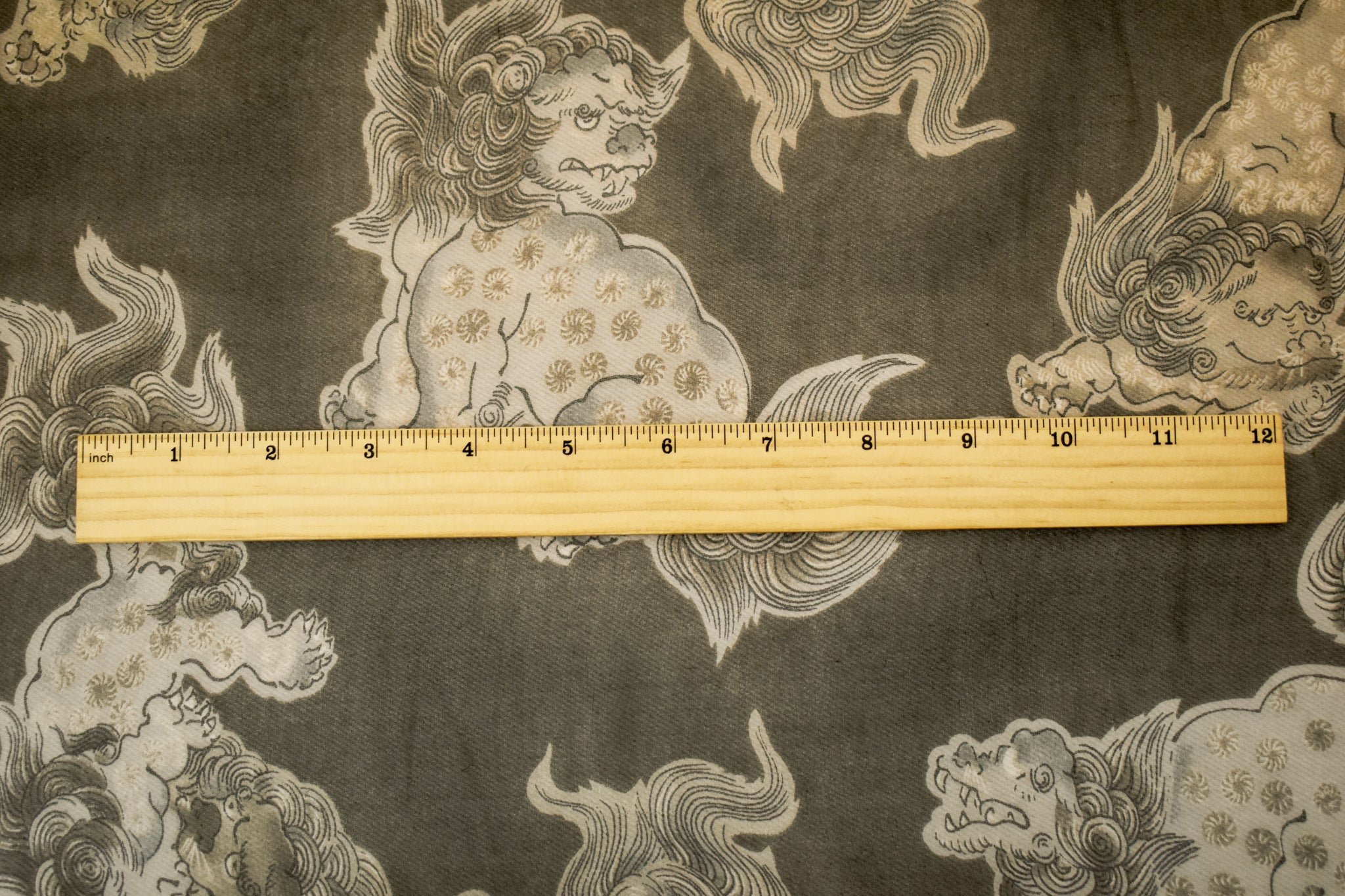 Brown-Beige-Multi Silk Folklore Creature Printed Chiffon Woven Fabric