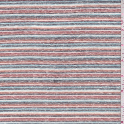 Brown Clay/Aqua/Charcoal Stripe Slub Jersey Knit Fabric