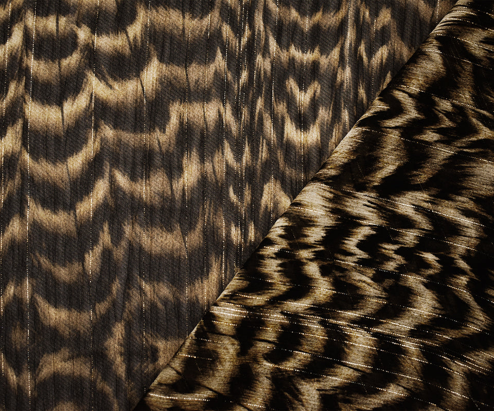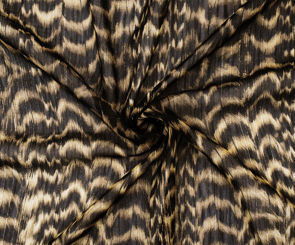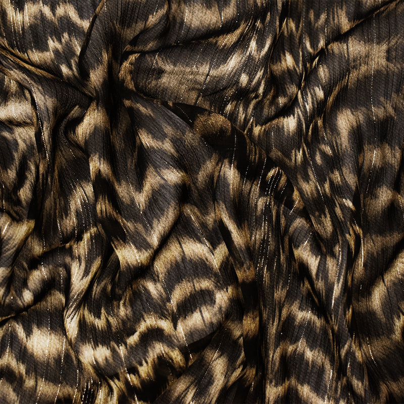 Brown-Gold-Multi Famous Designer Tiger Crinkled Chiffon Fabric
