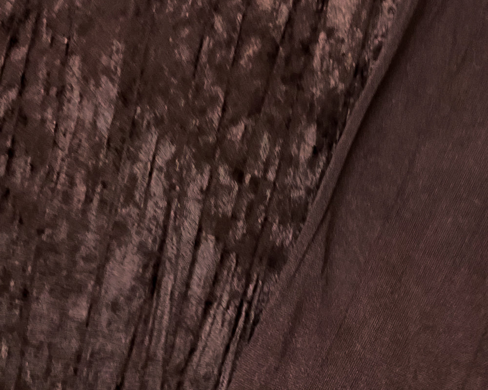 -Beautiful brown burnout velvet fabric with a pleat-like design texture.