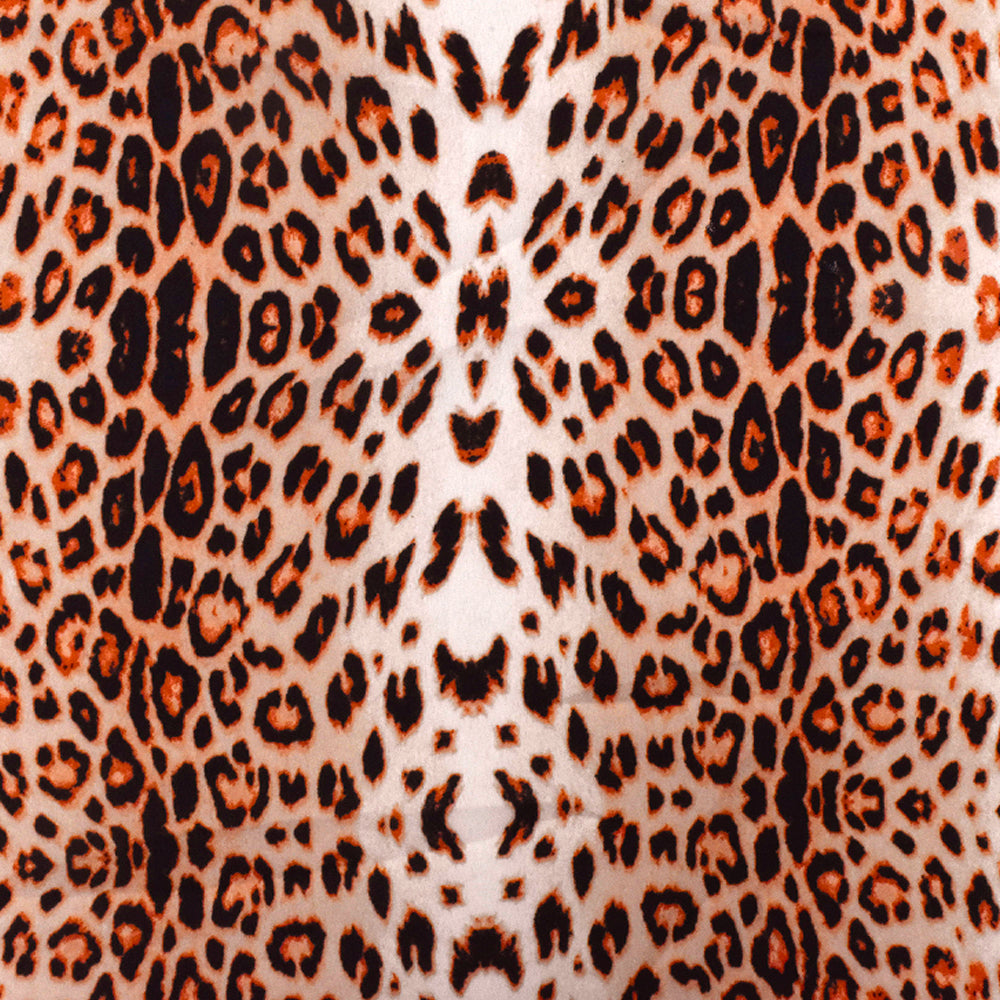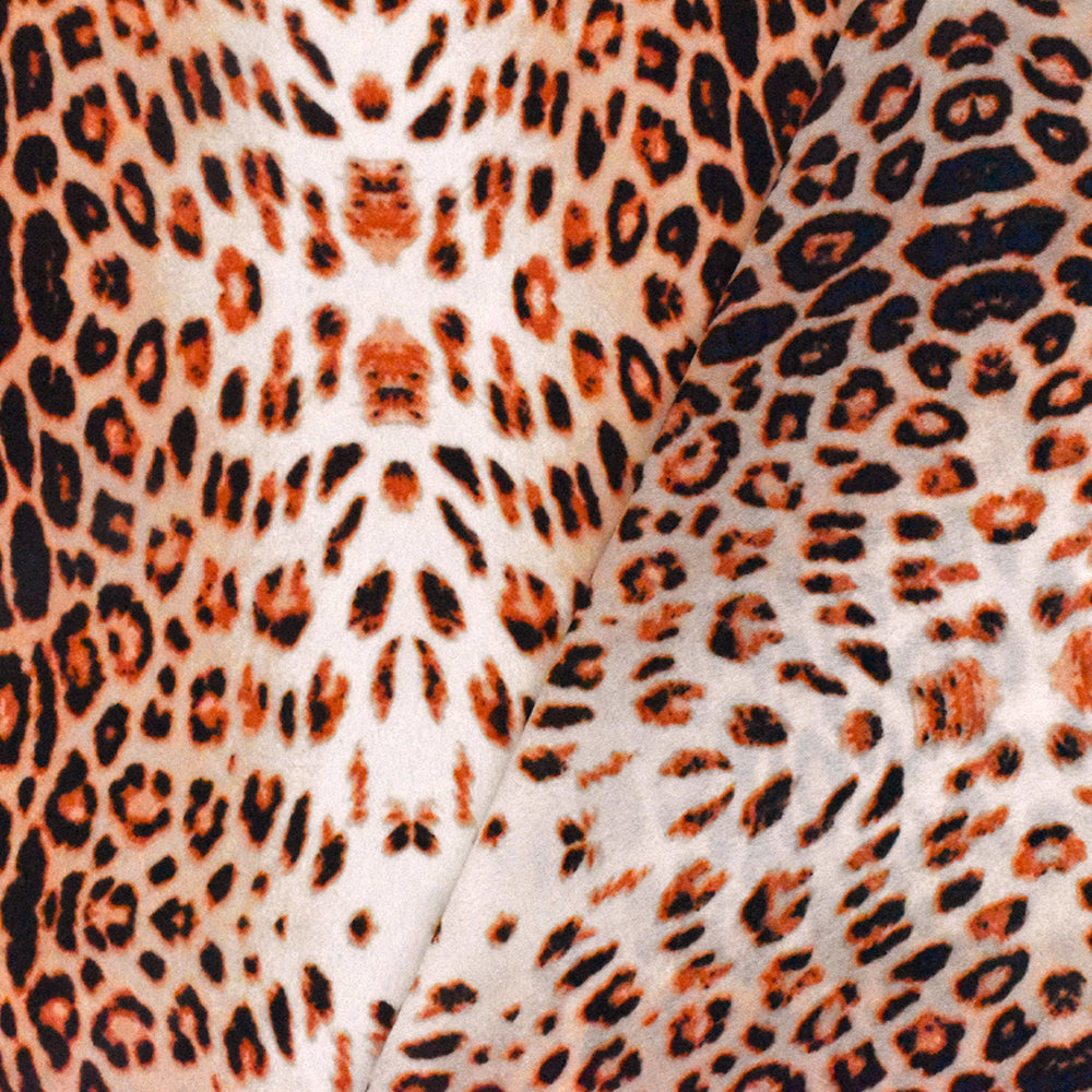 Coral Orange-Black-Multi Cheetah Printed Polyester Georgette Woven Fabric