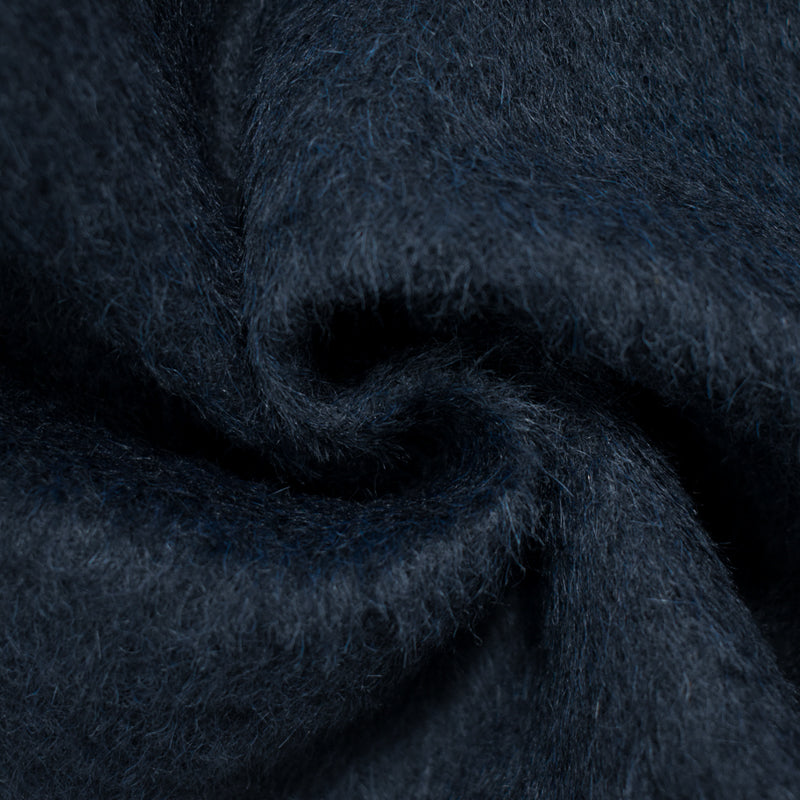 Deep Navy-Black Wool Heather Fur-Like Woven Dobby Coating Fabric