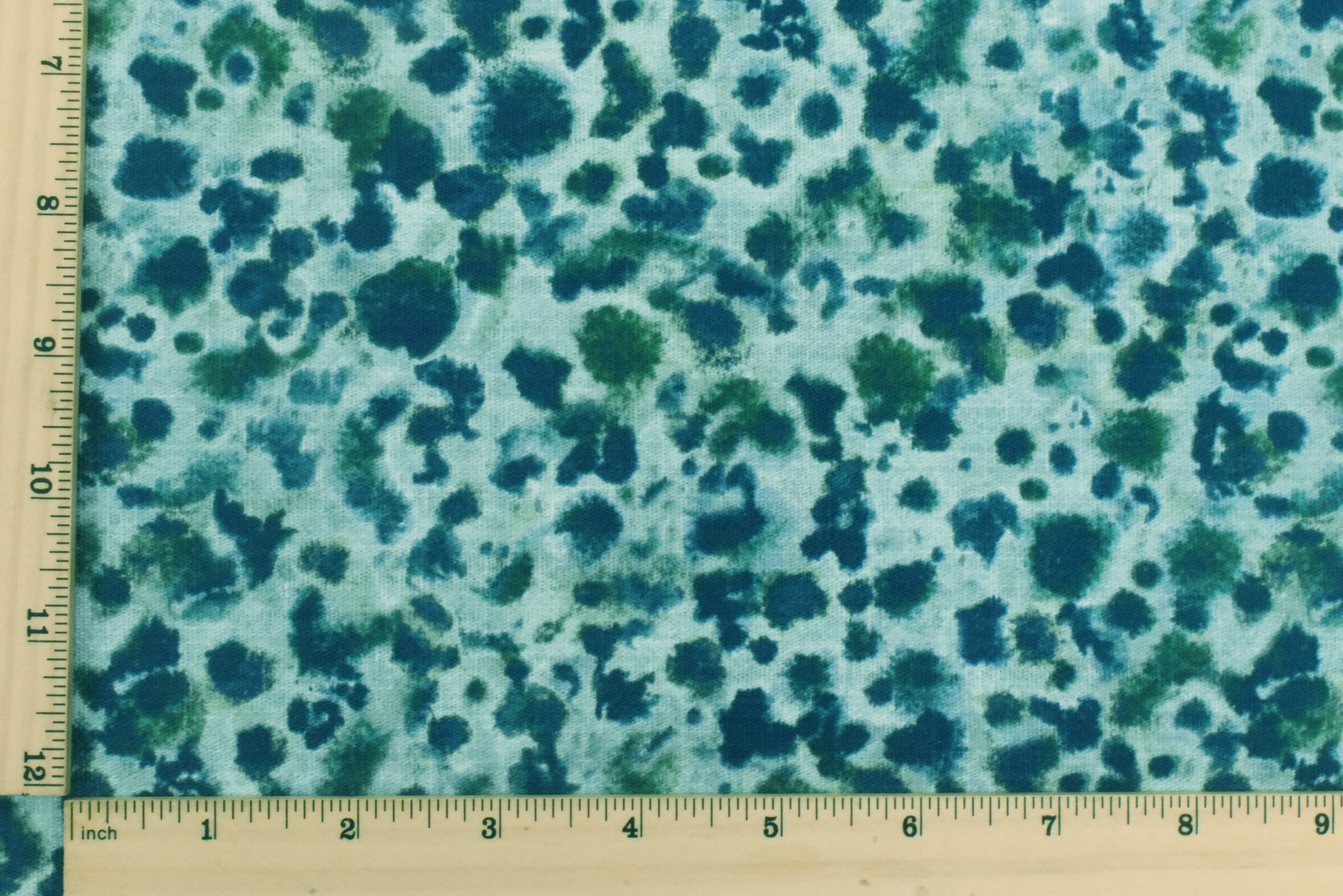 Deep Teal-Multi Watercolor Spots Printed Slub Decorating Fabric