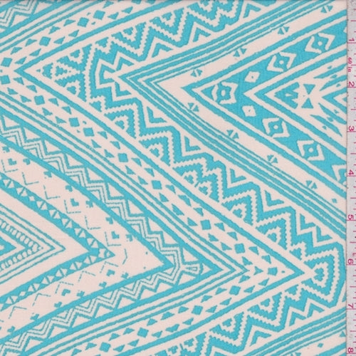 Ecru/Turquoise Aztec Zig Zag Georgette Fabric