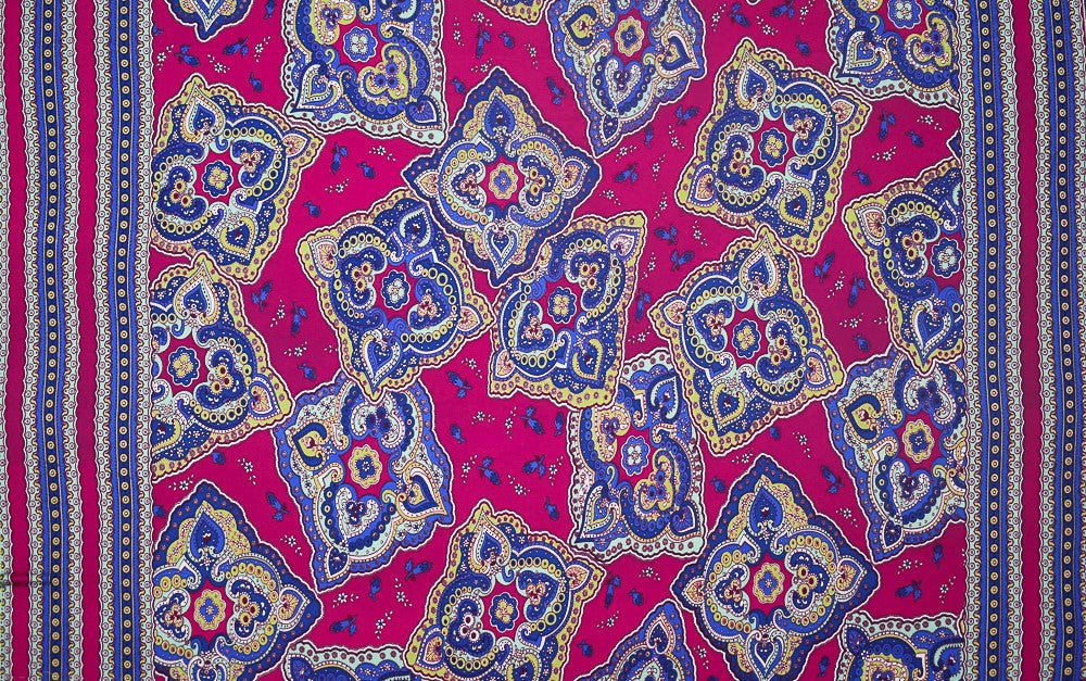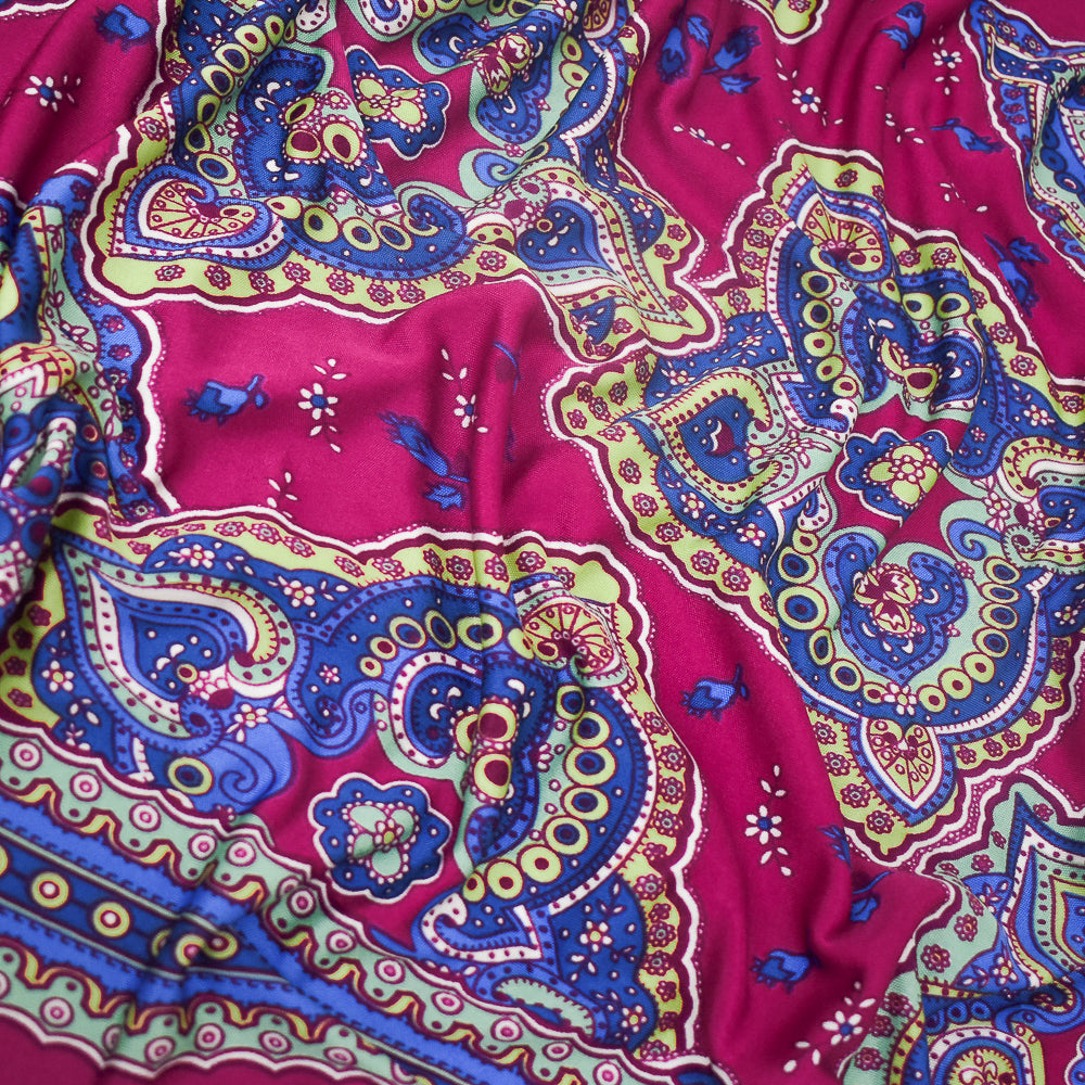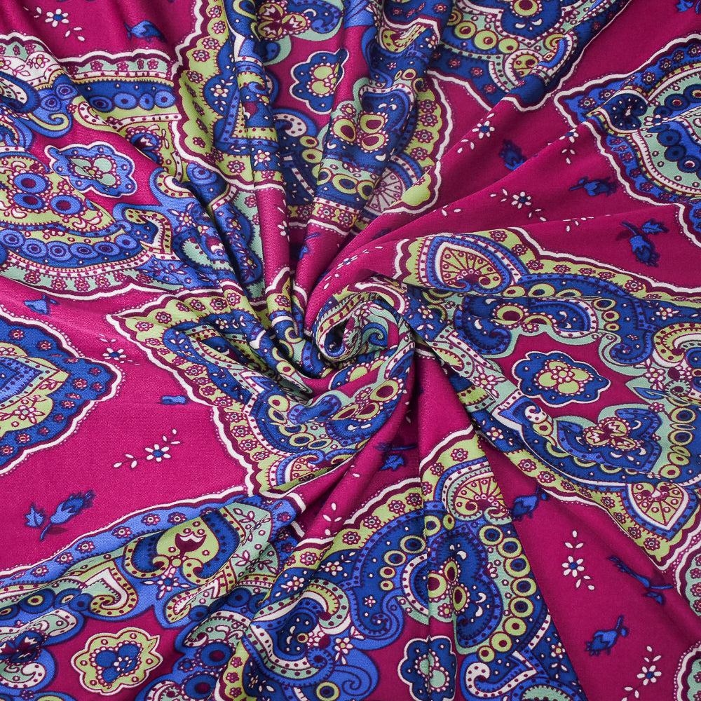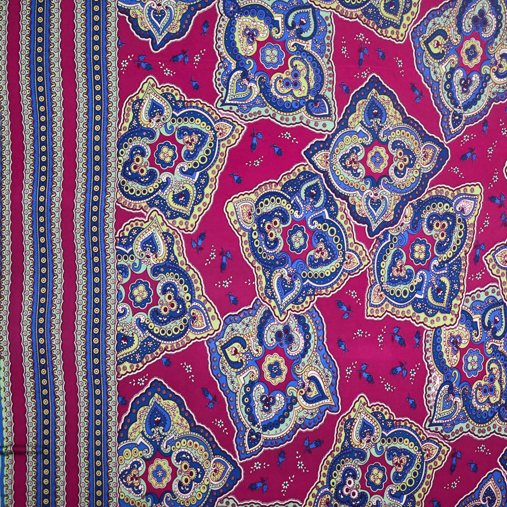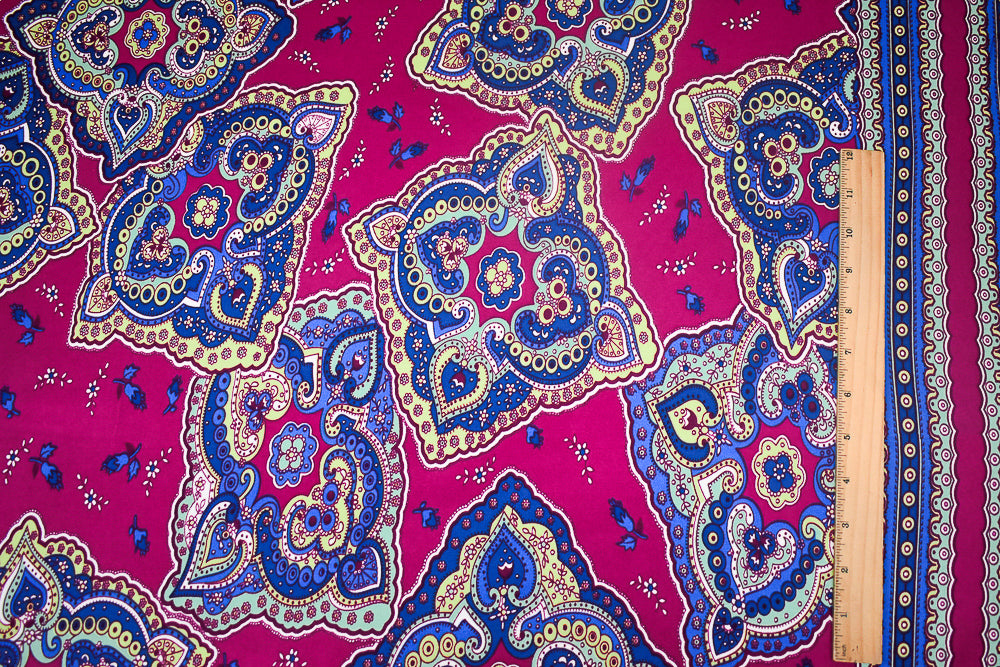 Fuchsia-Multi Bandana Border Pattern Print Stretch Silk Jersey Knit Fabric