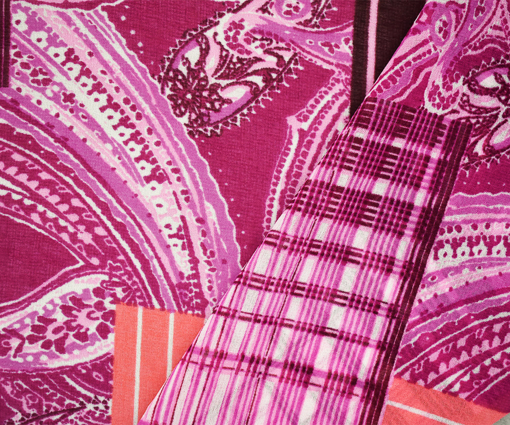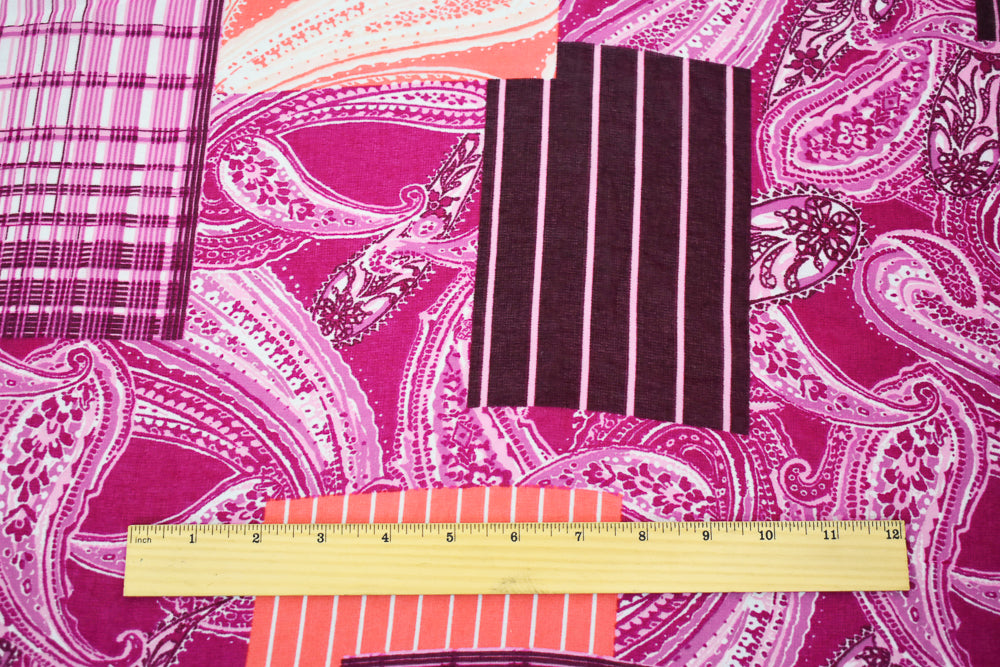 Fuchsia Pink-Coral-Multi Patch Paisley Printed Poly Chiffon Woven Fabric