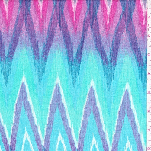 Fuchsia/Turquoise/Sea Green Flamestitch Crepon Fabric