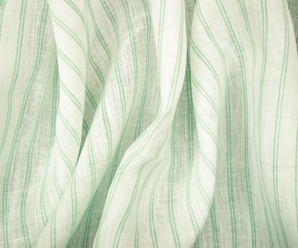Green-White Spence Bryson Stripe Irish Linen Slub Woven Fabric