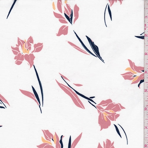 Ivory/Pink Modern Floral Double Brushed Jersey Knit Fabric