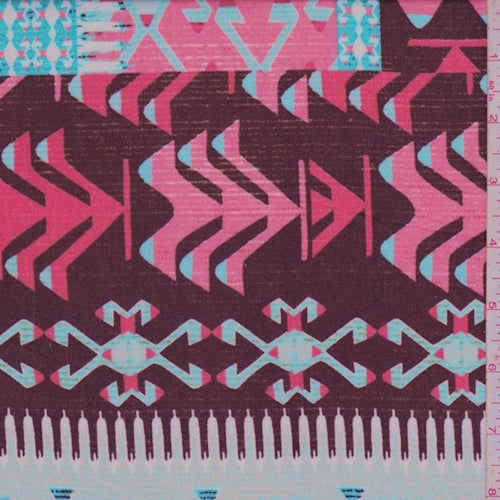 Maroon/Turquoise Tribal Stripe Rayon Crepe Fabric