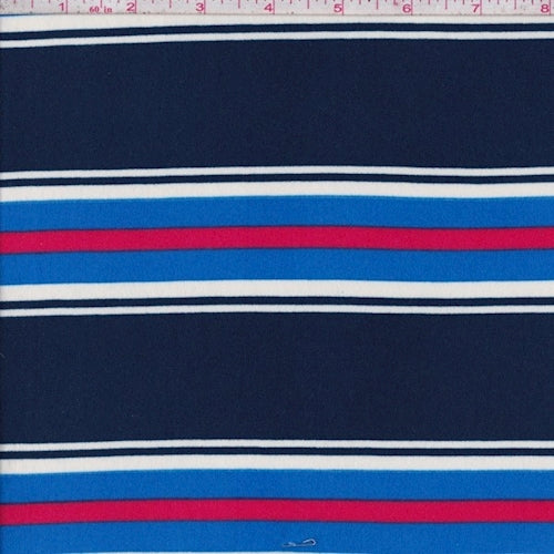 Navy/Blue/Raspberry Stripe Double Brushed Jersey Knit Fabric