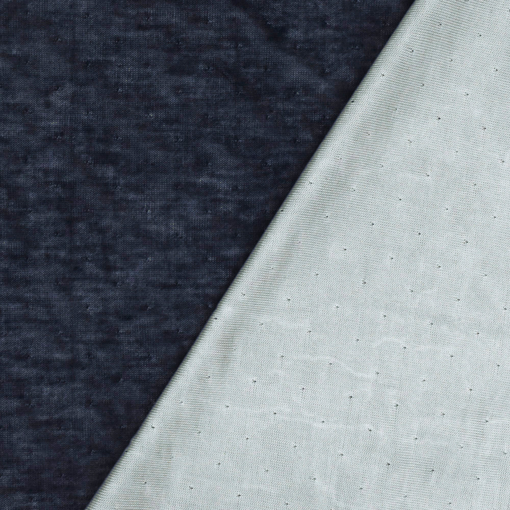 Navy-White Viscose Pointelle Stretch Double Knit Fabric