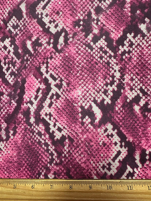 Neon Pink Multi Snakeskin Print Stretch Mesh Fabric