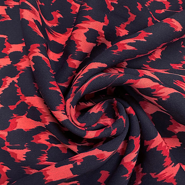 Neon Red Multi Animal Print Poly Georgette Fabric