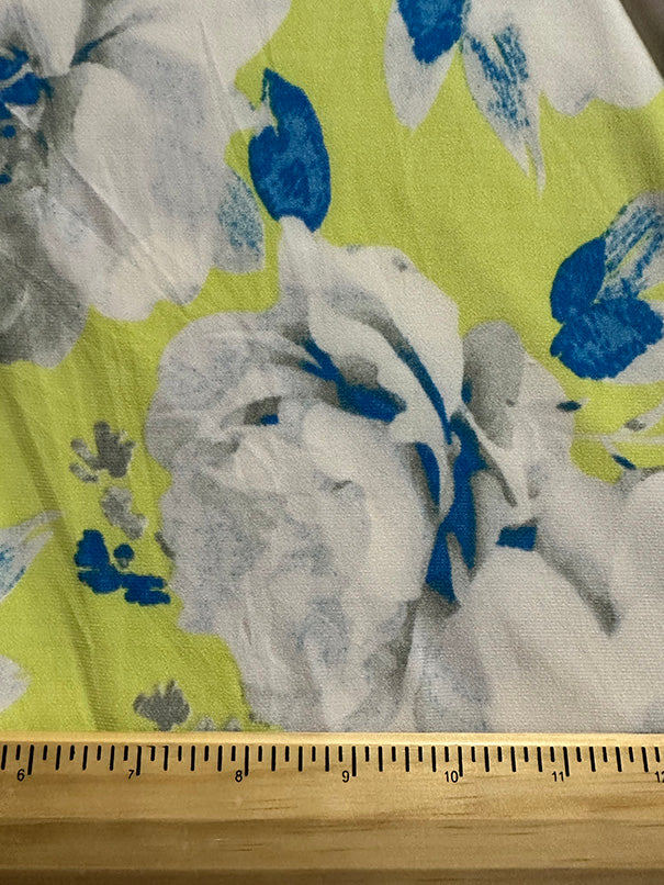 Neon Yellow Floral Print ITY Jersey Knit Fabric