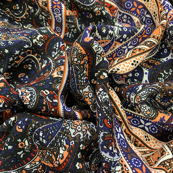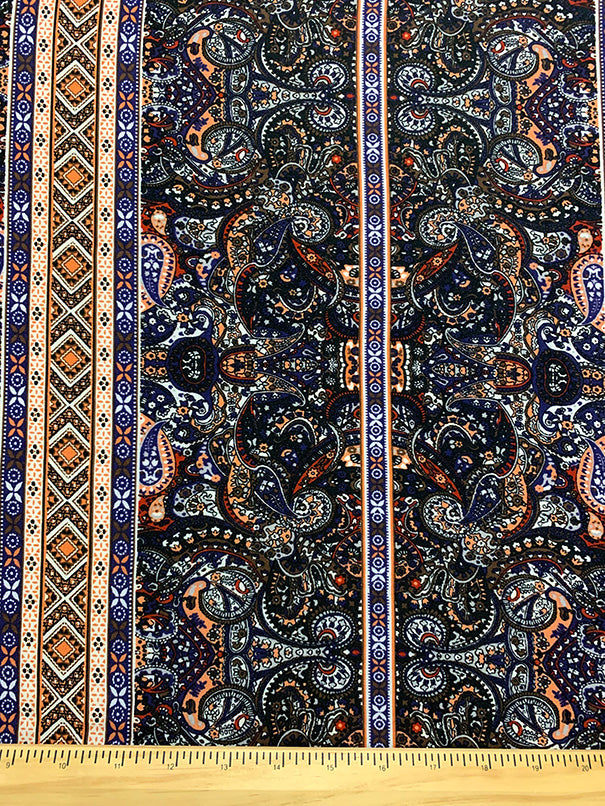 Peach Multi Stripe Print Rayon Challis Fabric