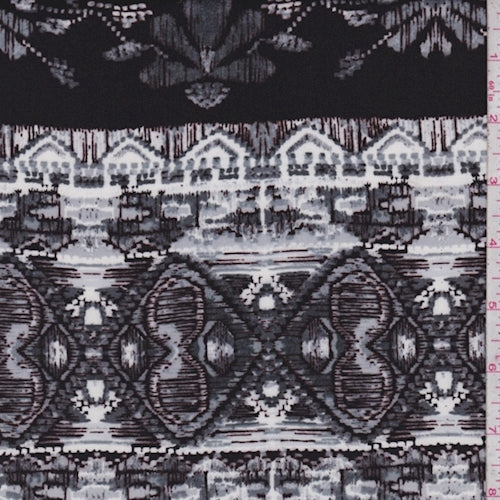 Pewter/Grey/Black Deco Stripe Rayon Challis Fabric