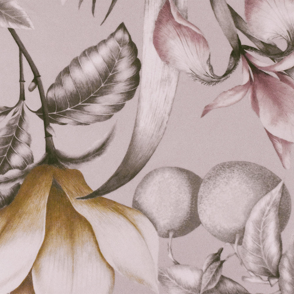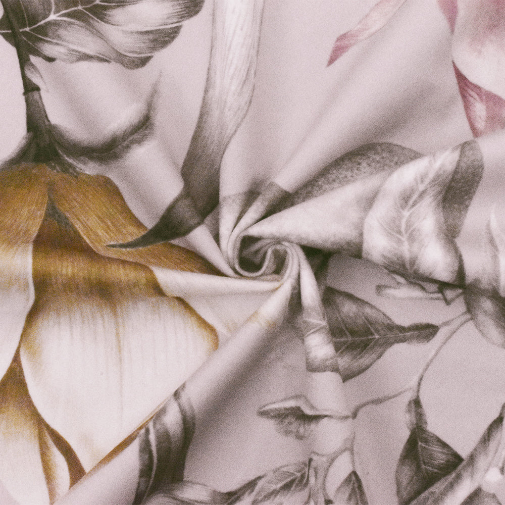 Pink-Beige-White Floral Print Faux Suede Poly Home Decorating Fabric