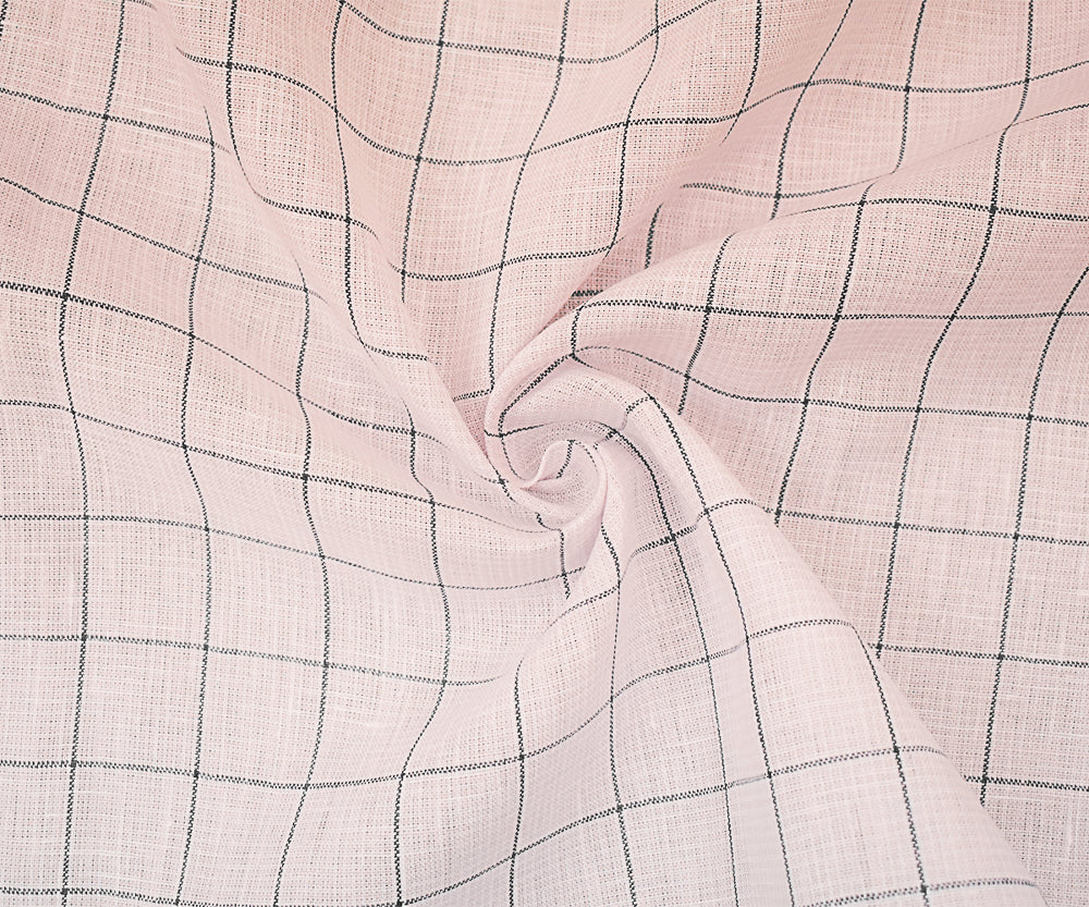Pink-Deep Gray-White Spence Bryson Check Grid Irish Linen Woven Fabric