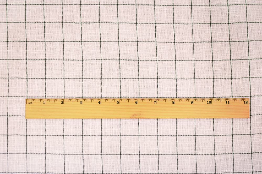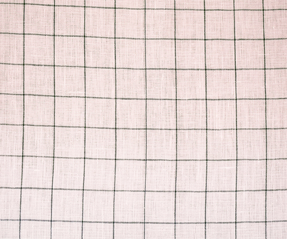-150 gsm Spence Bryson Katesbridge 100% Linen yarn dyed check grid-like pattern woven with a soft sanforised finish. Line if needed. Made in Ireland.