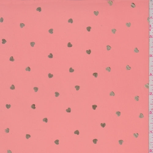 Pink Salmon/Gold Mini Heart Georgette Fabric