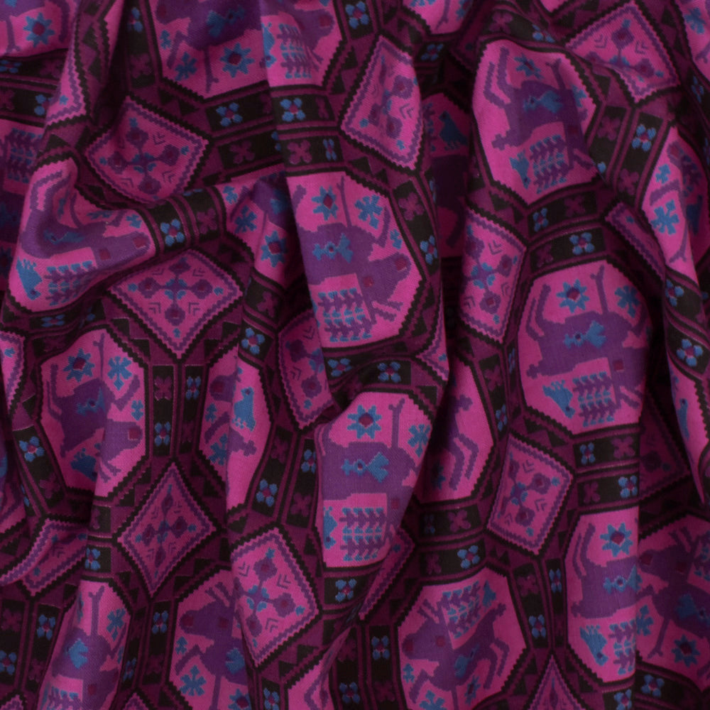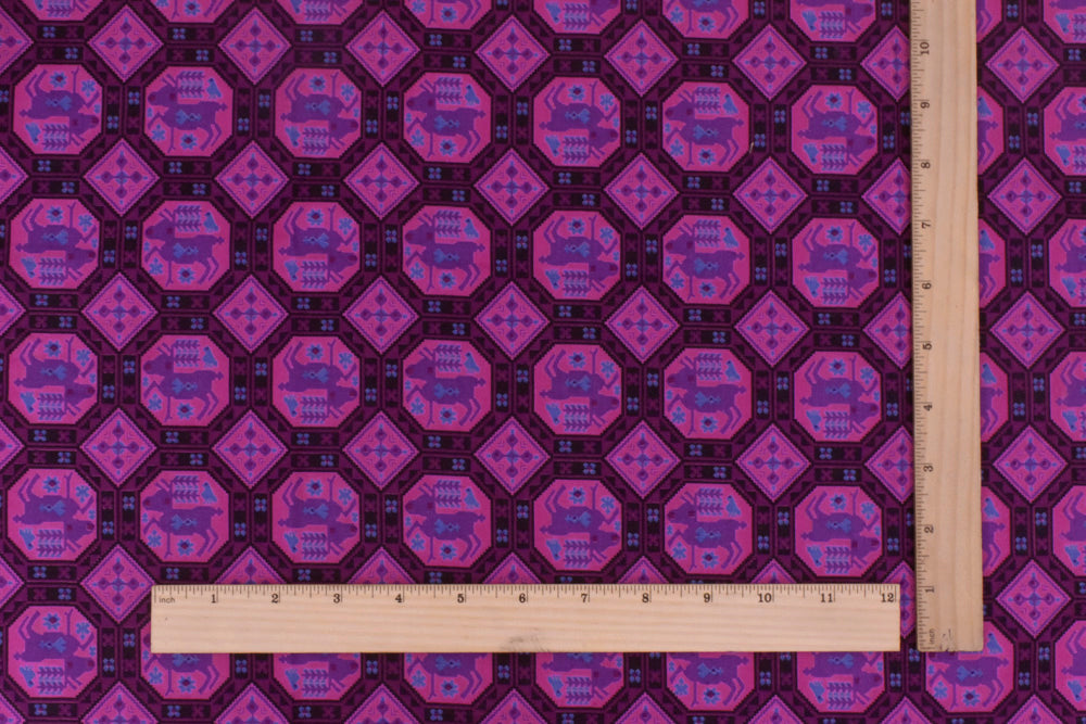 Plum/Pink/Multi Vintage 1950s Reindeer Print Shirting Fabric