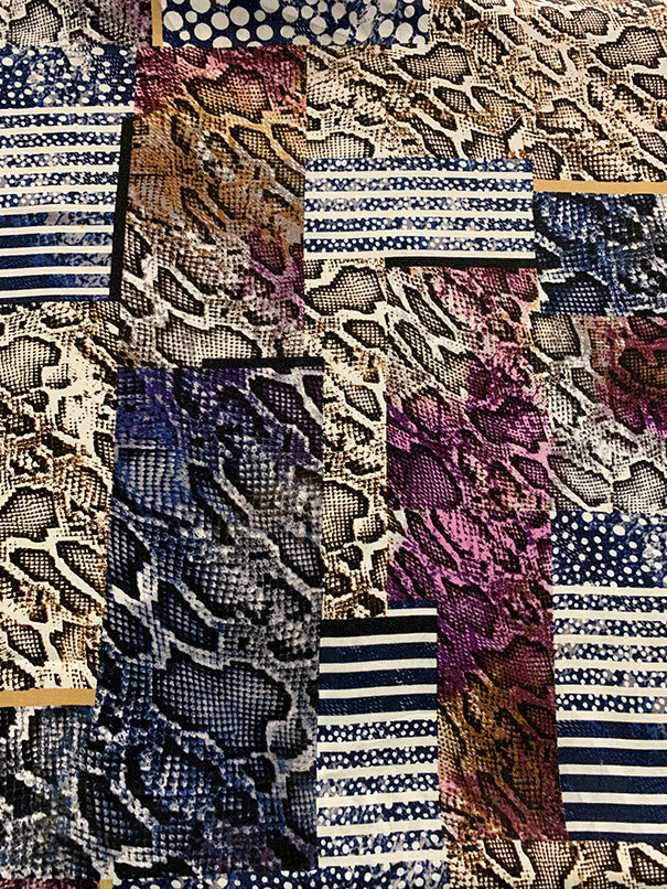 Purple and Blue Multi Animal Patchwork Print Rayon Challis Fabric