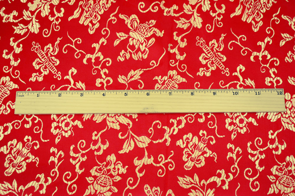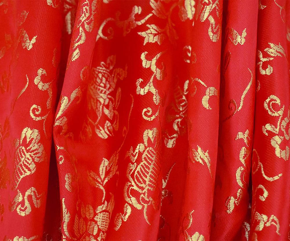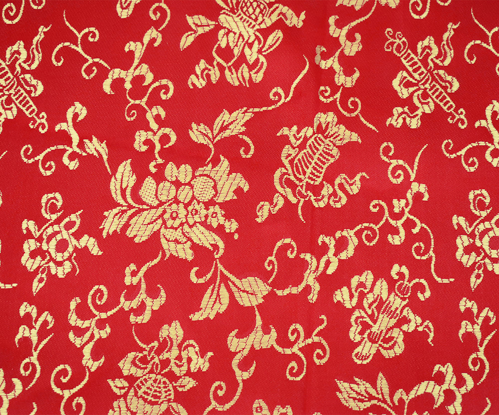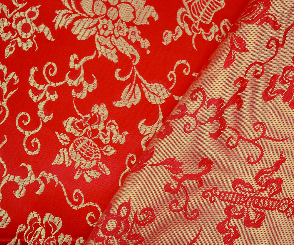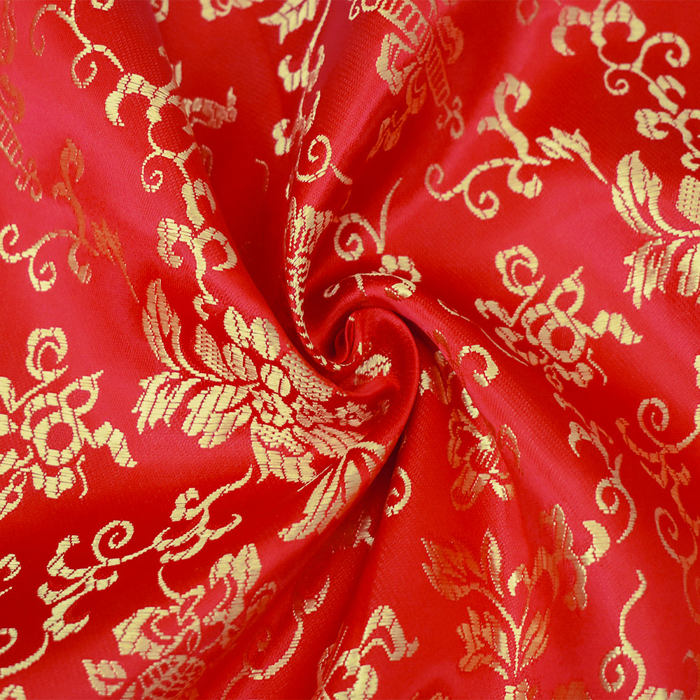 Red-Yellow Polyester Floral Pattern Chinese Brocade Woven Fabric