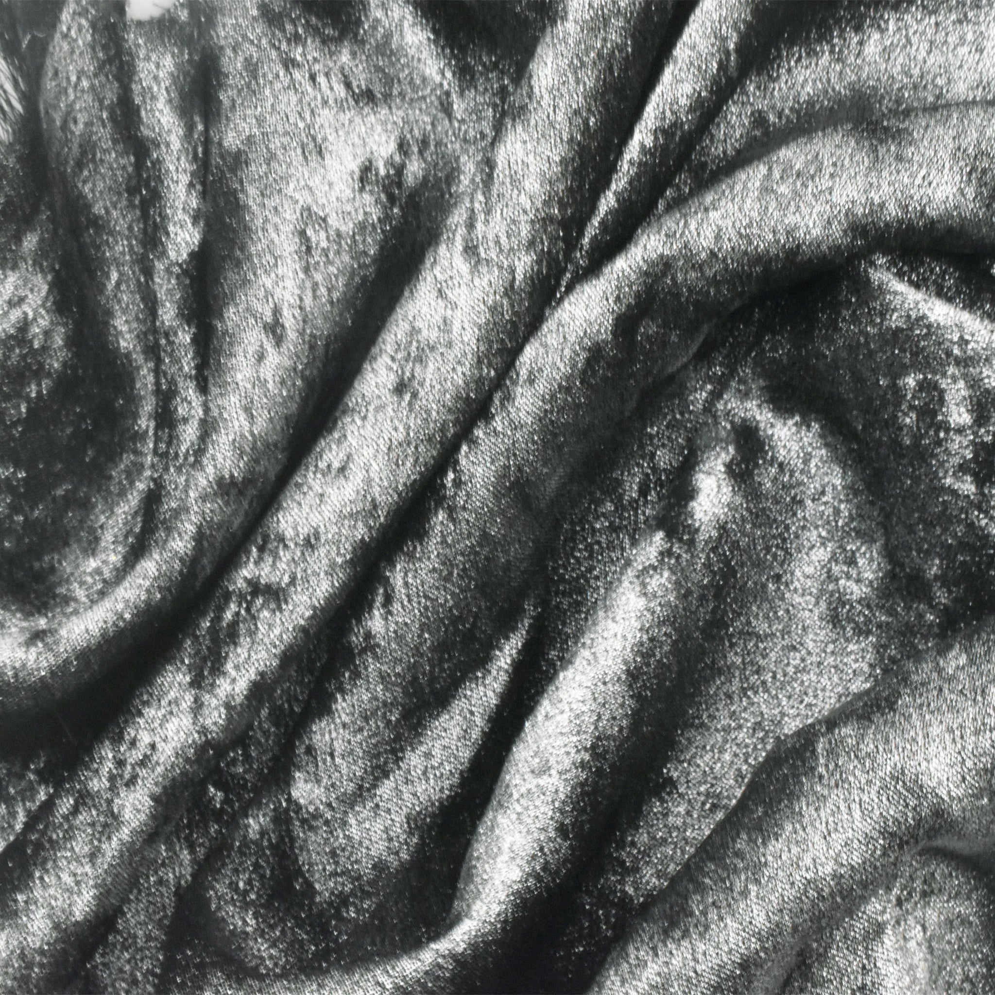 -Beautiful and light weight woven fabric printed with a crushed velvet-like textured look in metallic silver