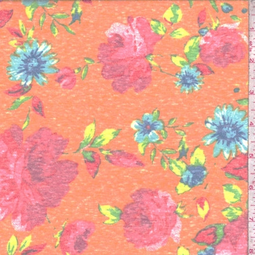Tangerine Floral Slub Jersey Knit Fabric
