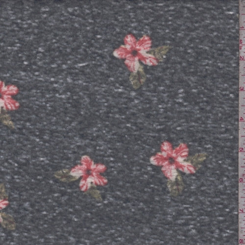 Vintage Navy Dogwood Floral Slub Jersey Knit Fabric